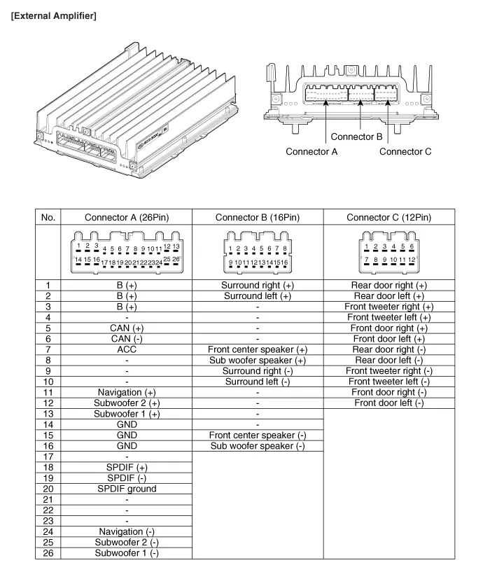 | 12 | Navigation voice (-) | Battery (+) | Ground |
