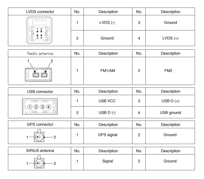 | 13 | Navigation voice (+) | MM CAN low | LVDS LOCK |