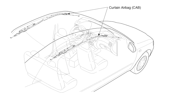 Description Curtain airbags are installed inside the headliner (LH and RH) and protect the driver and passenger from danger when side crash occurs.