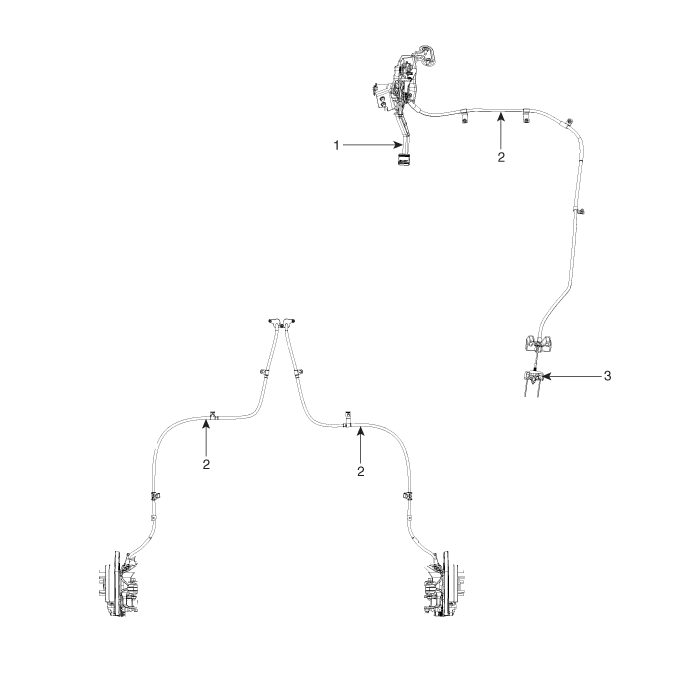 | 1. Parking brake pedal 2. Parking brake cable | 3. Equalizer assembly |