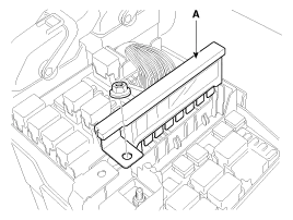 | A. Front deicer B. IGN2 relay C. Blower relay D. Burglar alarm horn relay E. IGN1 relay F. Cooling fan #1 relay | G. Cooling fan #2 relay H. Start relay I. Rear defogger J. Horn relay K. ACC relay L. Fuel pump relay |