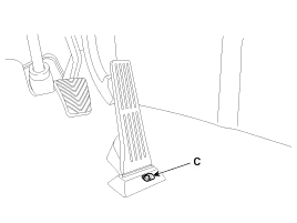 Remove the installation nuts (B) and bolt (C), and then remove the accelerator pedal module.