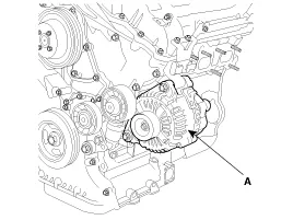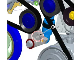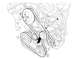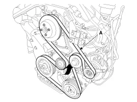 To release the tension, turn the drive belt tensioner counterclockwise then remove the drive belt (A).