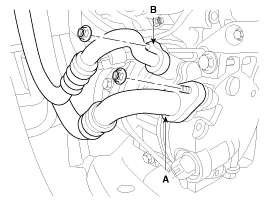 Removal 1. Disconnect the negative (-) battery terminal. 2. Using a screw driver or remover, remove the center fascia lower panel (A). 3. Remove the in-car hose (A) and disconnect the connectors (B) from the heater & A/C control unit. 4.