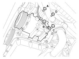 Make sure of the length of compressor mounting bolts, and then tighten it A→B→C→D order.