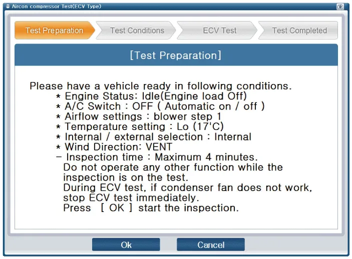 Connect GDS to the vehicle and select ''Aircon Compressor Test(ECV type)''