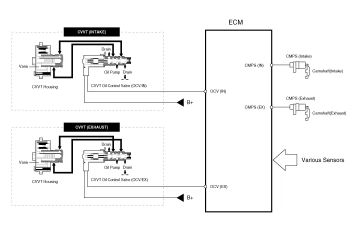 the CVVT Oil Control Valve (OCV) which supplies the engine