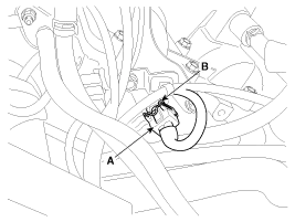 Disconnect the connector (A), and then remove the CVVT oil temperature sensor (B).