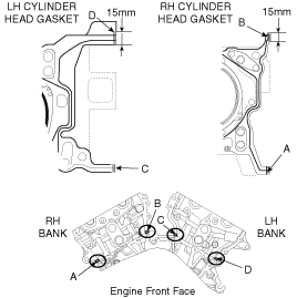 Components 1. RH Cylinder head2. RH Cylinder head gasket3. LH Cylinder head4. LH Cylinder head gasket5. Cylinder block 1. Camshaft bearing cap 2.