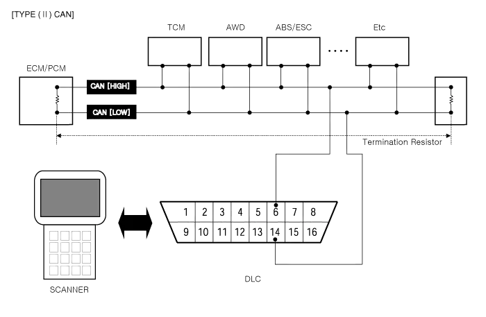 Service Mode (Upgrade, Writing VIN) : 500 or 1Mbps)