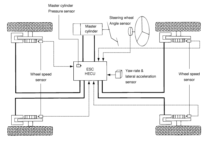 ESC essentially consists of three assemblies : the sensors, the electronic control unit and the actuators.