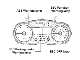 informs driver of the system failure through the BRAKE/ABS/ESC warning