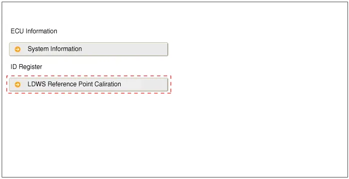 Select "LDWS Reference Point Calibration" and complete calibration procedures.