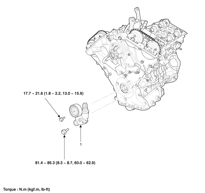 Removal and Installation 1. Remove the drive belt idler. (Refer to Timing System - "Idler") 2. Remove the drive belt auto tensioner (A). Tightening torque Bolt (B) : 81.