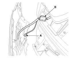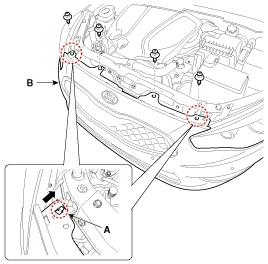 Disconnect the fog lamp connector (A) and front bumper main connector (B).