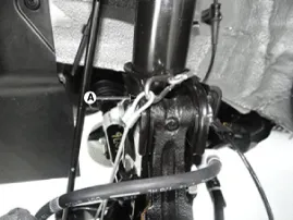 Loosen the front brake disc mount screw and then remove the front brake disc (A).