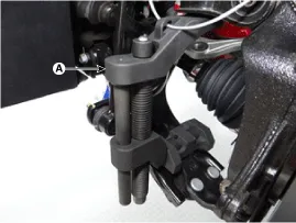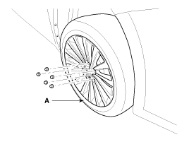 Remove driveshaft caulking nut (A) from the front hub under applying the break.