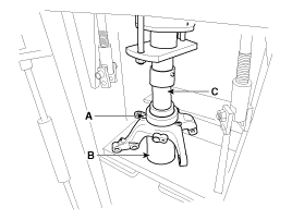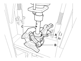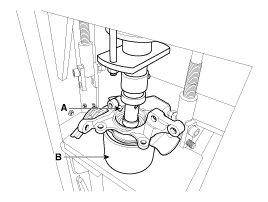 Remove the brake caliper mounting bolts , and then place the brake caliper assembly (B) with wire.