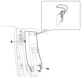 After loosening the mounting bolts, then remove the center pillar upper trim (A) .