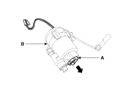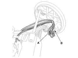 Disconnect the electric pump wiring connector (A) and the fuel sender connector (B).