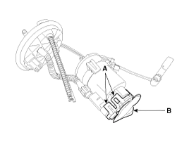 Removal 1. Remove the fuel pump. (Refer to Fuel Delivery System - “Fuel Pump”) 2. Disconnect the electric pump wiring connector (A) and the fuel sender connector (B).