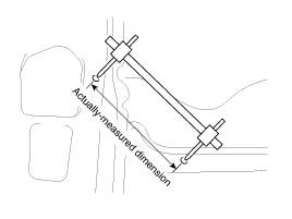 These dimensions indicate the actual linear distance between measurement points, and are used as the reference dimensions when a tracking gauge is used for measurement.