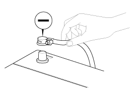 Be sure to disconnect the battery cable from the negative (-) terminal of the battery.