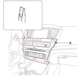 Remove the center fascia panel (A) with hazard lamp switch.