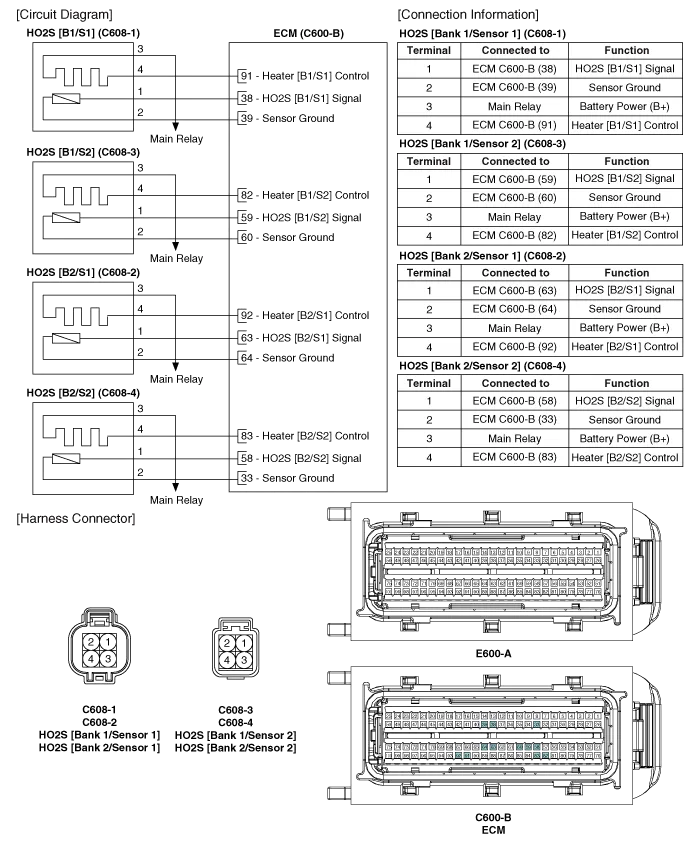 Inspection 1. Turn the ignition switch OFF. 2. Disconnect the HO2S connector. 3. Measure resistance between the HO2S terminals 3 and 4. 4.