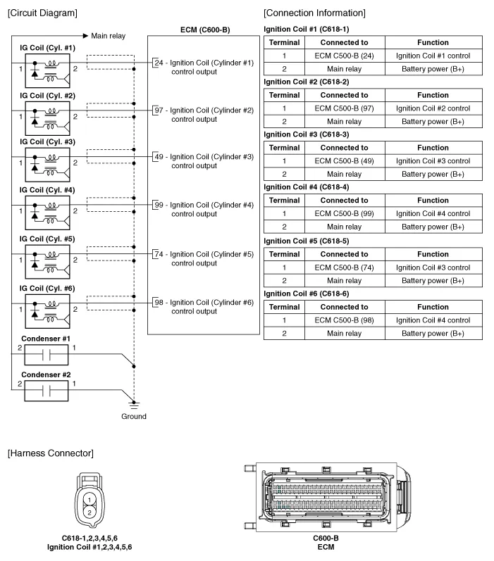 Removal [Ignition Coil #2, #4, #6] 1. Turn the ignition switch OFF and disconnect the battery negative (-) cable. 2. Remove the engine cover. 3.