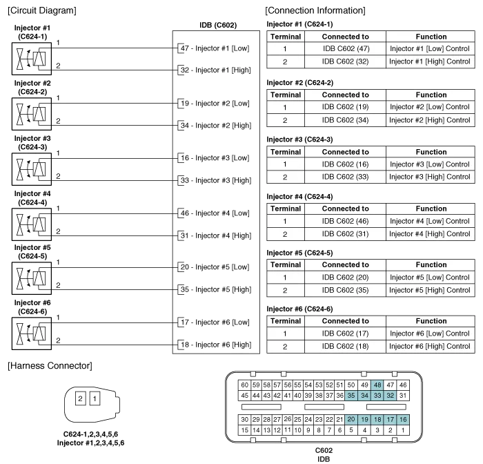 Inspection 1. Turn the ignition switch OFF. 2. Disconnect the injector connector. 3. Measure resistance between the injector terminals 1 and 2.