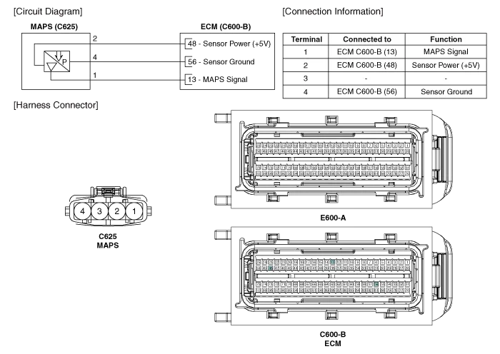 Inspection 1. Connect the GDS on the Data Link Connector (DLC). 2. Measure the output voltage of the MAPS at idle and IG ON. ConditionOutput Voltage (V)IG ONApprox.