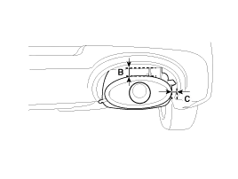 Record the gap (A, B, C, D, E, F) between the tail pipe (or tail trim) and the rear bumper.