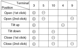 Ground the terminals as below table, and check that the roller blind motor operates.