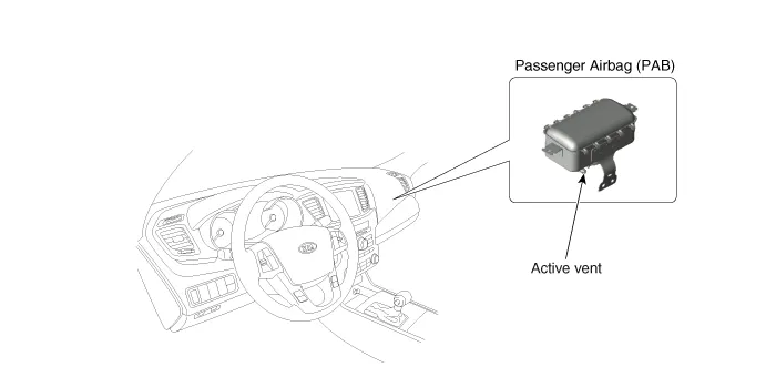 Description Passenger Airbag (PAB) module is located in the passenger crash pad. This PAB contains 2 firing squibs of airbag and 1 firing squib of active vent.