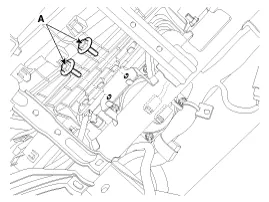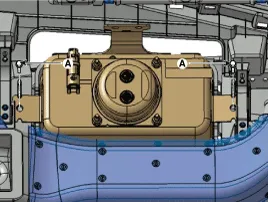 Place a passenger airbag on the crash pad and tighten the passenger airbag mounting bolts (A).