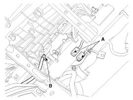 Disconnect the passenger airbag connector (A) and active vent connector (B).