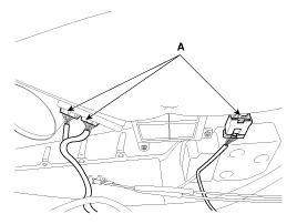 Removal 1. Disconnect the negative (-) battery terminal. 2. Remove the rear bumper cover. (Refer to Body - "Rear Bumper Cover") 3. Disconnect the connector (A) from the parking assist sensor. 4. Pull out the sensor (A) by opening the sensor holder (B) out.