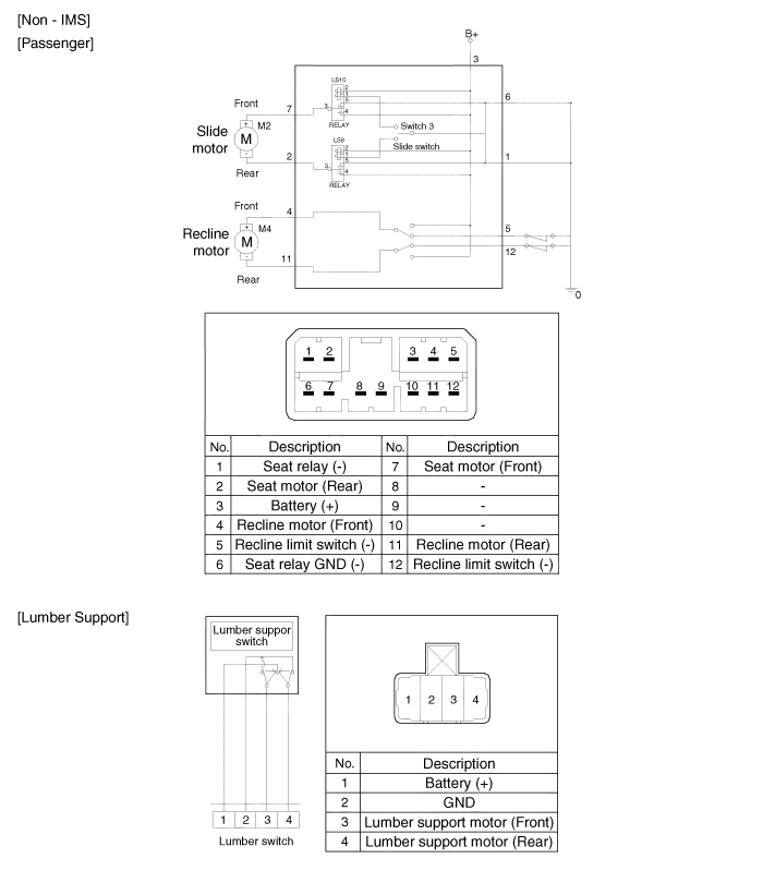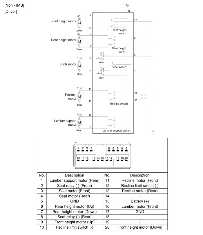 Inspection With the power seat switch in each position, make sure that continuity exists between the terminals below. If continuity is not as specified, replace the power seat switch.