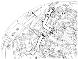 Remove the radiator upper hose (A) and lower hose (B).