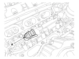 Disconnect the rail pressure sensor connector (A), and then remove the sensor from the delivery pipe.