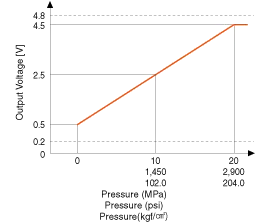 | Pressure [MPa (kgf/cm², psi)] | Output Voltage (V) |