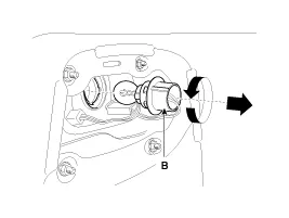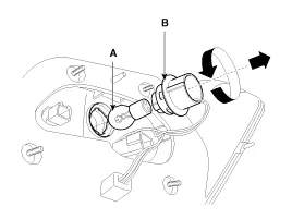 Turn the socket counterclockwise to remove the back up lamp bulb (A).