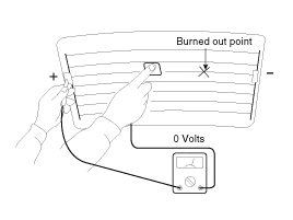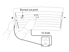 Turn on the defogger switch and use a voltmeter to measure