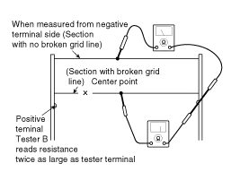 broken heater line will have a resistance twice as that in other