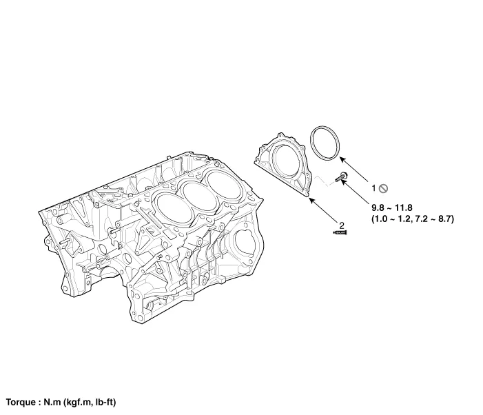 | 1. Rear oil seal 2. Oil seal case |