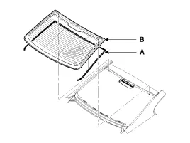 Paste the rear window glass moulding (A), and then install the rear window glass (B).
