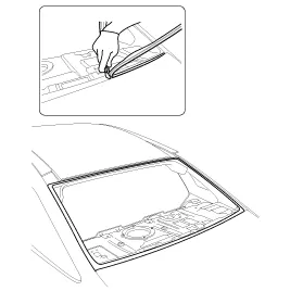 a bead of sealant (B) around the edge of the rear window glass (A) as