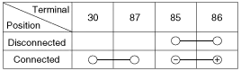There should be no continuity between the No.30 and No.87 terminals when power is disconnected.