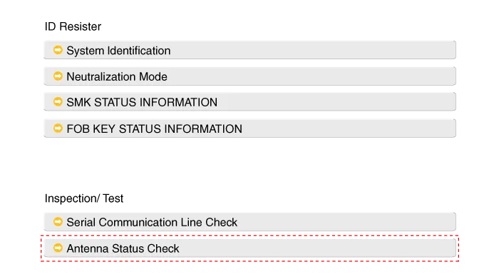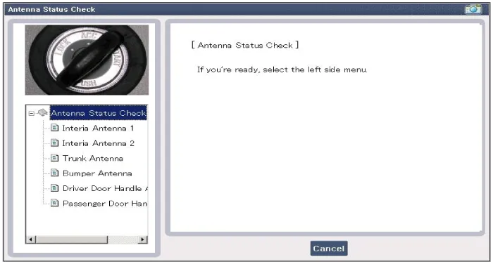 After IG ON, select the "Antenna Status Check".